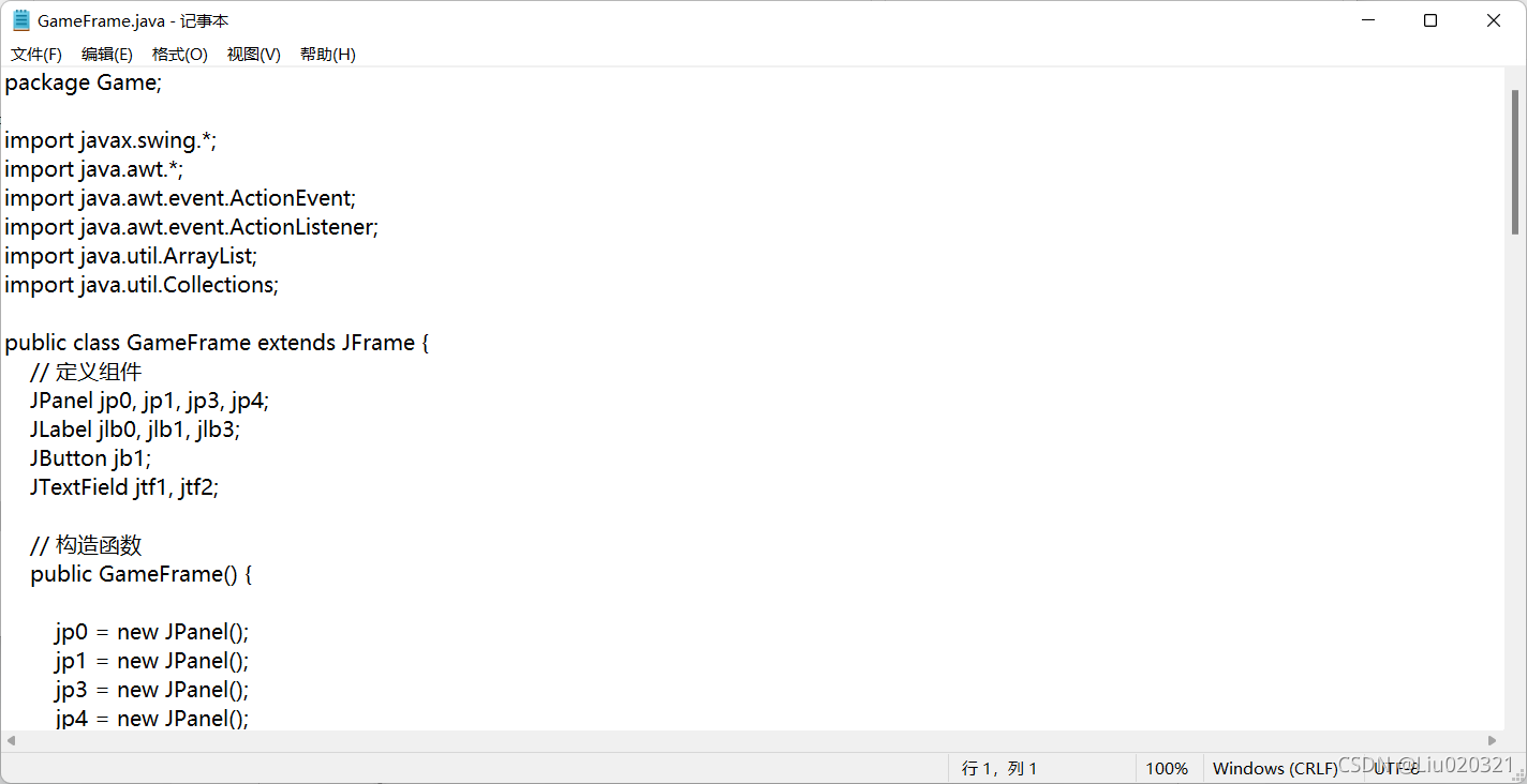 8.可以看到第一行是否写着package ***(***是package后面的自定义名字 ),例如我这个文件后面是Game,我就需要在src目录下新建一个Game的包。ps:如果没有package这个单词在第一行就不用建立包,直接右键src进行第12步即可。