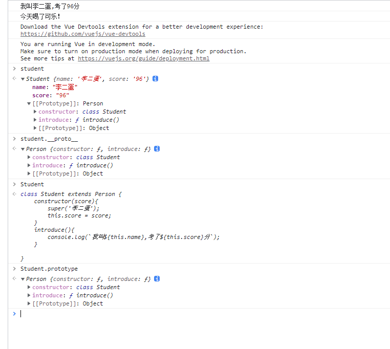 所以在控制台上打印student.__proto__ === Student.prototype 会是true 因为前者指向后者。这就是原型的概念。