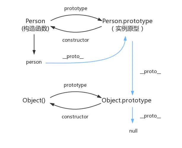 原型链:当访问一个对象的属性或者方法时,首先会去从自身找,如果找不到,就会往它的原型上去找,如果原型还是找不到,就会往原型的原型上去找,这样就构成了一条原型链。如上图所示,student的introduce方法自身找不到,所以会去隐式原型上去找,由于隐式原型指向的是Student.prototype,所以可以找到introduce这个方法并且将它执行掉。但是drink这个方法在Student.prototype上找不到,所以又会继续在Student的隐式原型上去找,而Student的隐式原型指向的是它的父类Person,所以此时可以找到drink的方法,将它执行掉。注意:每个对象都有 __proto__ 属性,但只有函数对象才有 prototype 属性。原型链的尽头是null;