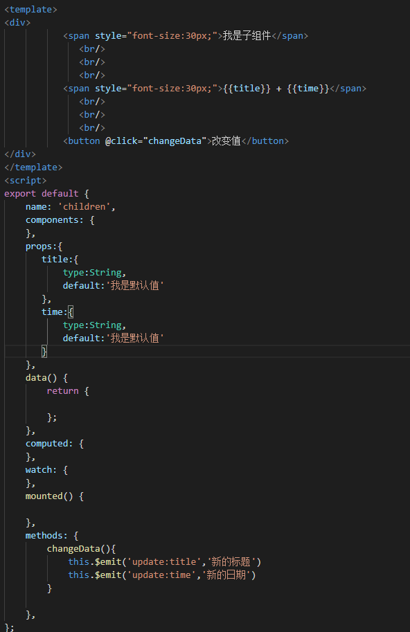 此时子组件如果想要修改某个由父组件传过来的值,不可以直接在子组件内部进行修改,因为这个值是从父组件传递过来的,而子组件将它修改不符合规范(vue中组件内部的值是双向绑定的,但是组件与组件之间是单向的数据流,必须通过某种方式进行值的改变)