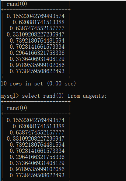 rand函数随机产生0到1之间的随机数,是伪随机,rand的参数是种子,在不同语句里同一个种子执行后,第一次的时候数都一样,他生成的随机数序列顺序一样,像这里,同样是一个随机数种子0,两次生成的随机数都是不一样的