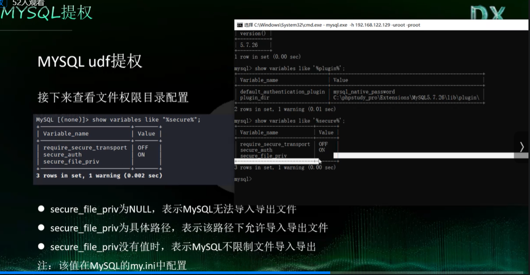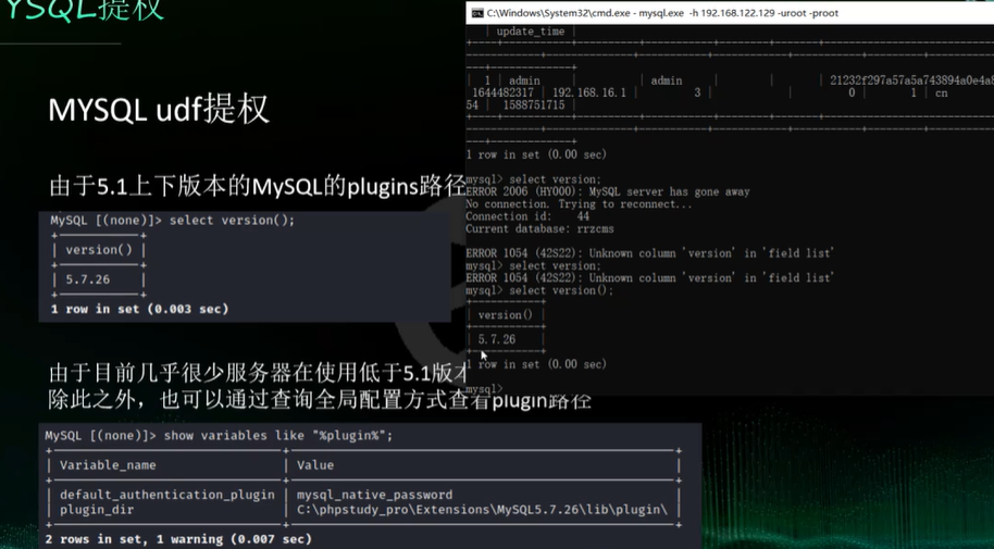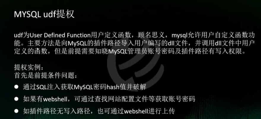 关键在于dll里的自定义函数,需要传入到mysql的plugins这个路径下,但是5.1上下版本的plugins路径不同,需要先获取版本号
