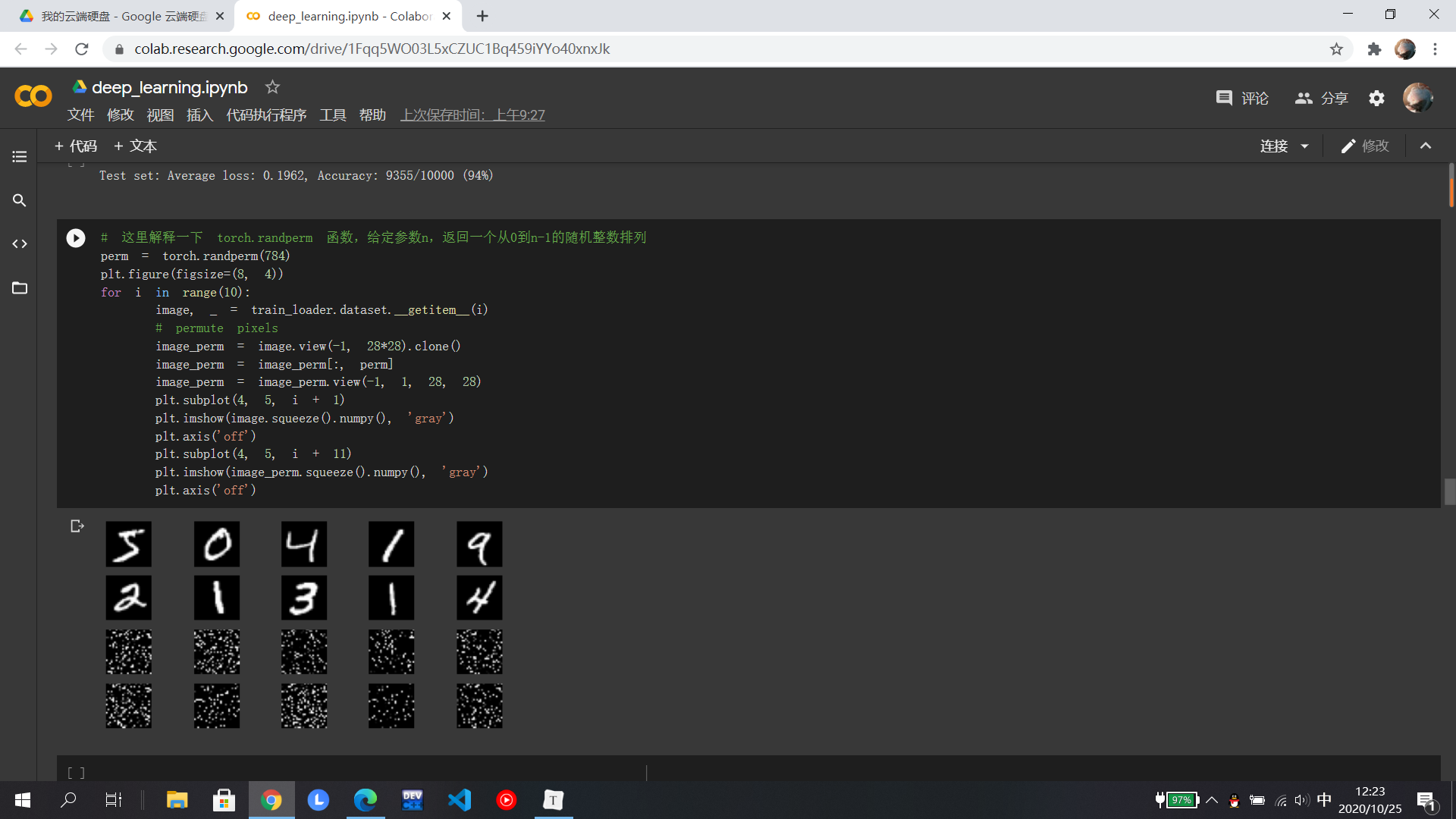 此次代码学习难度较大,有很些部分不是很理解,模块的函数只是理解一点点,不看解释理解起来难度比较大,在demo1里知道了打乱像素顺序后,卷积神经网络相较于全连接神经网络准确度有所下降。在demo2中好多函数不理解是实现的什么目标,而且定义的卷积神经网络与视频中的有点差别,(可能是层数有点少)。