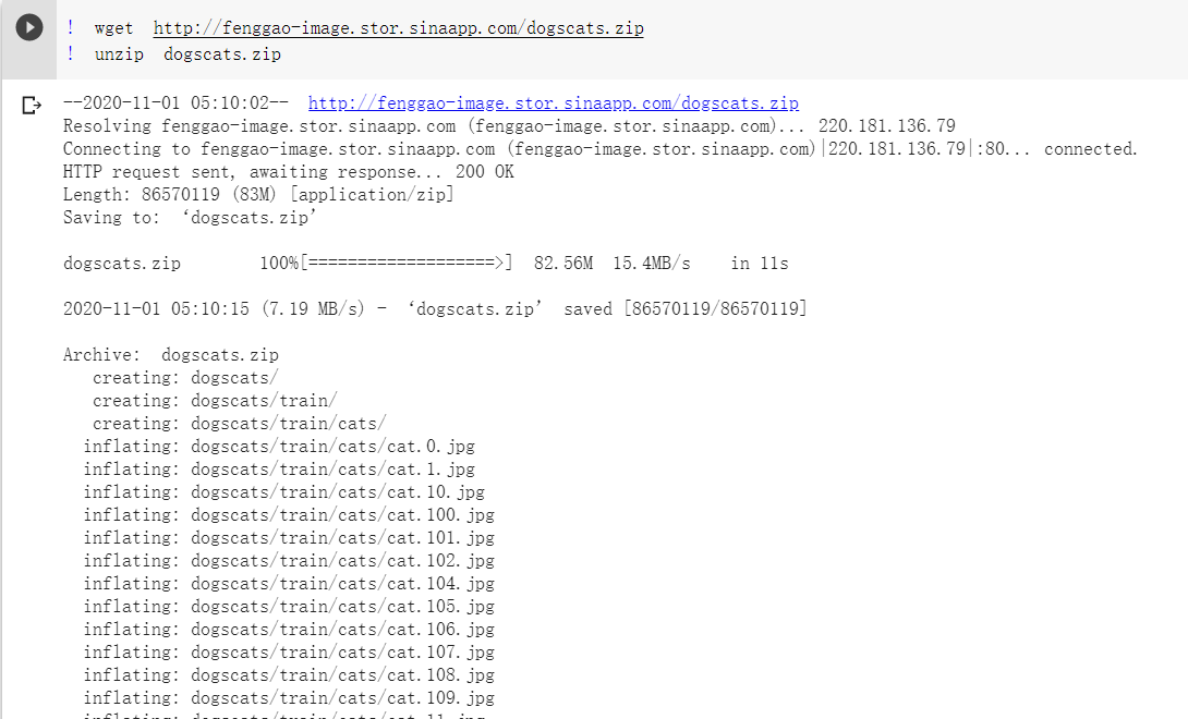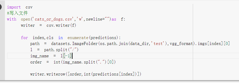 (2)将测试集文件解压后添加到./dogcats/test/目录下,并在dsets中添加'test'值