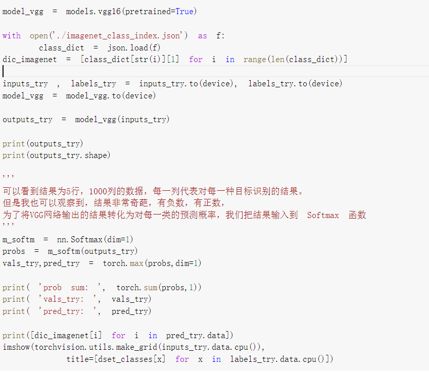在本课程中,我们直接使用预训练好的 VGG 模型。同时,为了展示 VGG 模型对本数据的预测结果,还下载了 ImageNet 1000 个类的 JSON 文件。