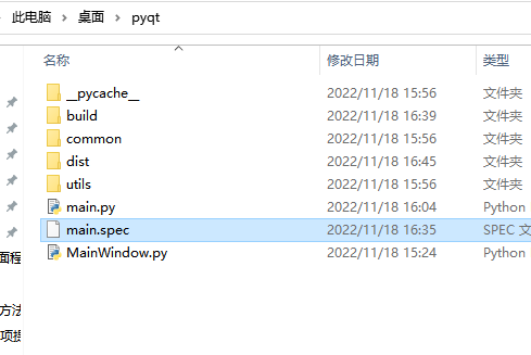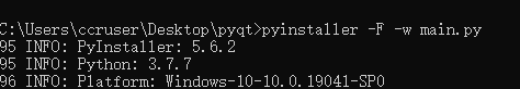 3.打包主程序文件 pyinstaller -F -w main.py。当前目录下会生成build,dist文件夹和main.spec文件