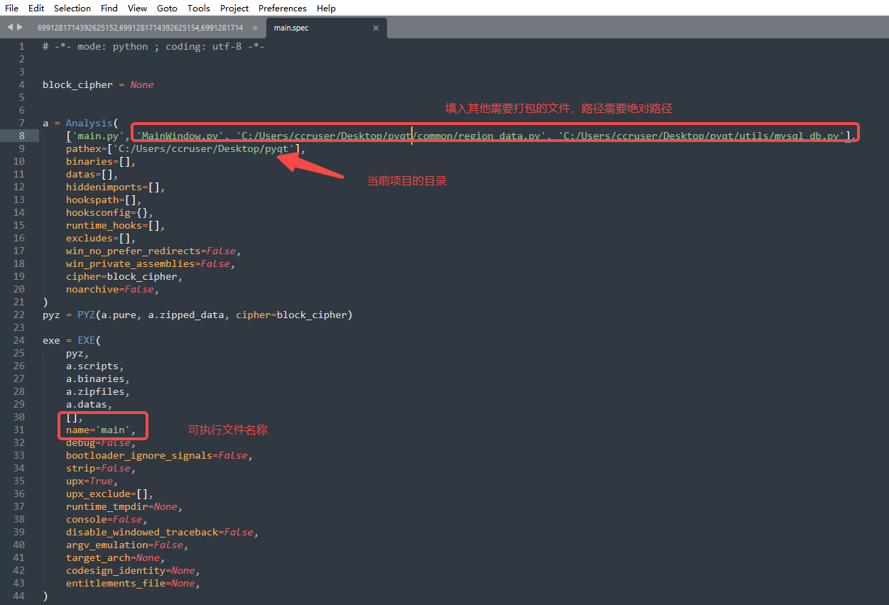 4.打包其余的文件 打开之前的spec文件 配置如下图