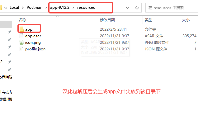 1.汉化包地址 https://github.com/hlmd/Postman-cn/releases?page=1 下载对应版本下的app.zip解压后放到postman安装路径下的版本号目录下的resources文件夹中