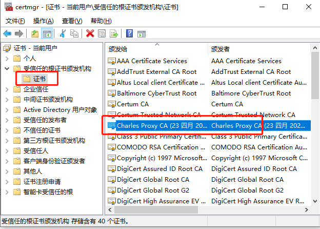 查看证书信任:Windows输入certmgr.msc