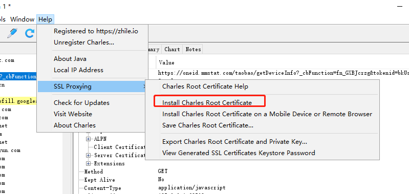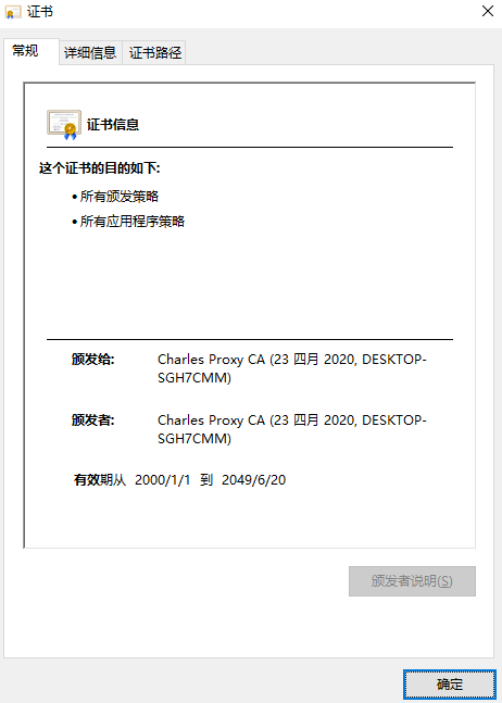 Charles会弹出一个弹窗,点击allow;再去手机端下载证书,在设置-->通用-->描述文件与设备管理可以看到对应文件是否已验证;最后进入设置-->通用-->关于本机-->证书信任设置开启即可