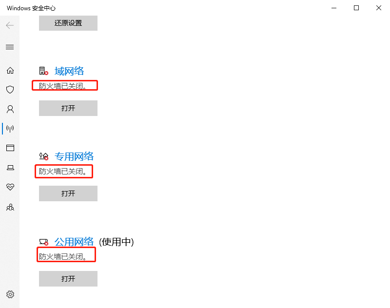 打开Windows防火墙,关闭三个网络 防火墙