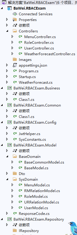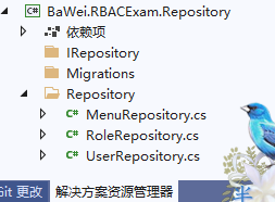 在对应的类库中写相关的操作 Model放在了SysDomain中,数据访问层写在了BaWei.RBACExam.Repository=》Repository