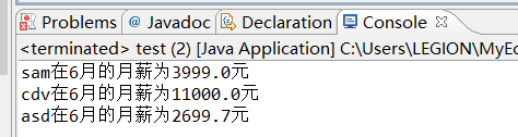 方法可以打印出某月某个员工的工资数额,写一个测试类