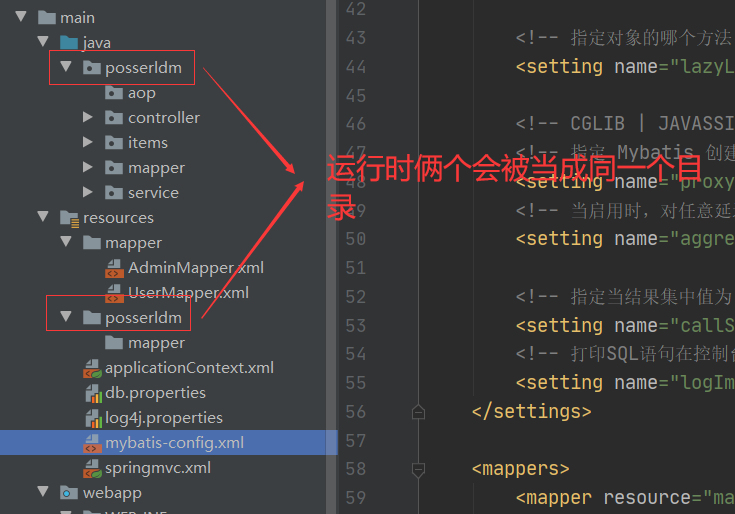 在java文件夹下的子文件夹和在rescource文件夹下的子目录在运行时maven会把它们当成同一个目录处理,如图: