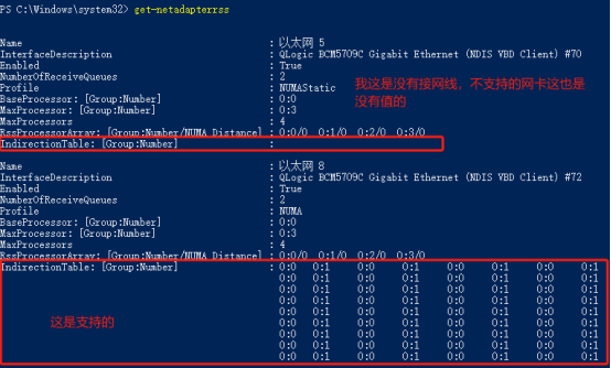 以上所列的不支持的,看官网PDF是支持的,在网卡的高级选项中也有但在windows powershell 中用 get-netadapterrss 查看“IndirectionTable: [Group:Number]”是没有值的
