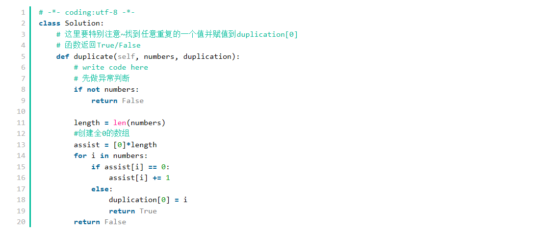 # 这里要特别注意~找到任意重复的一个值并赋值到duplication[0]