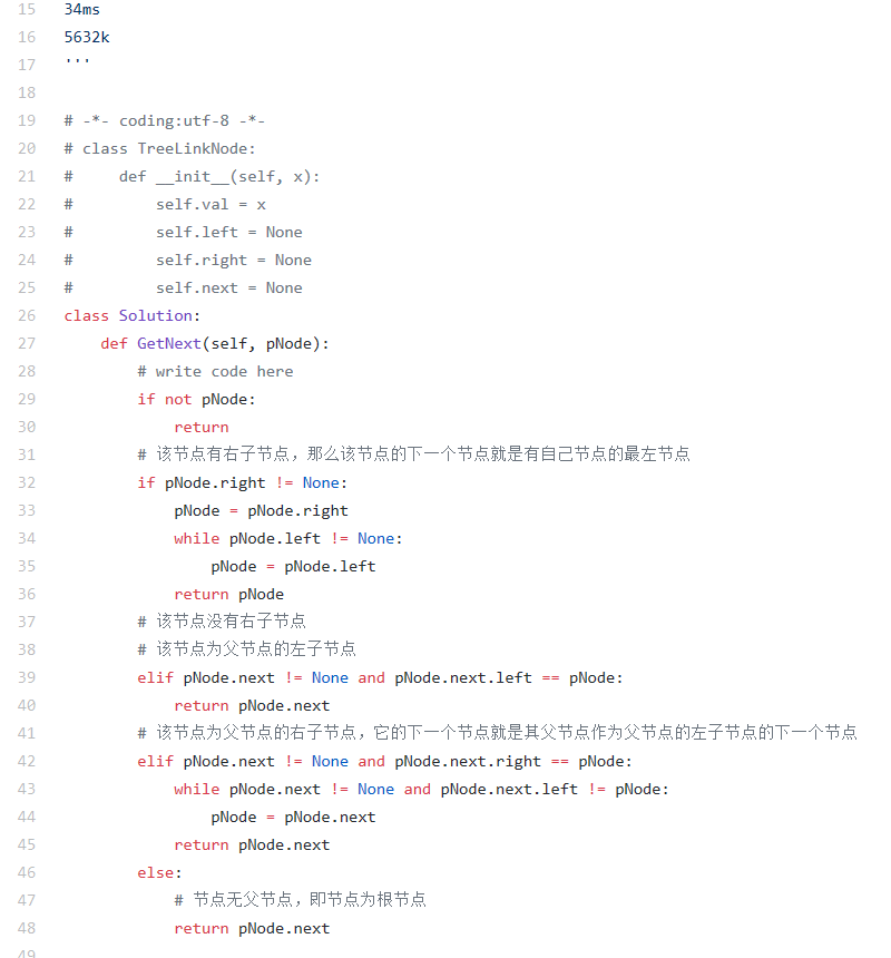 2.2 该节点为父节点的右子节点,则沿着父节点向上遍历,知道找到一个节点的父节点的左子节点为该节点,