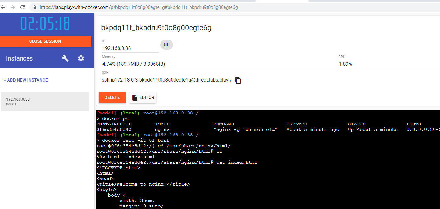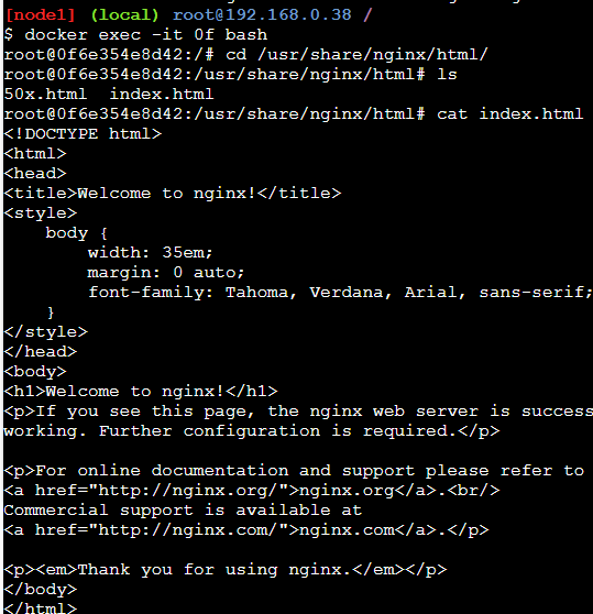我们对nginx进行修改 0f是80端口的前两个字符,通过bash进入nginx里面