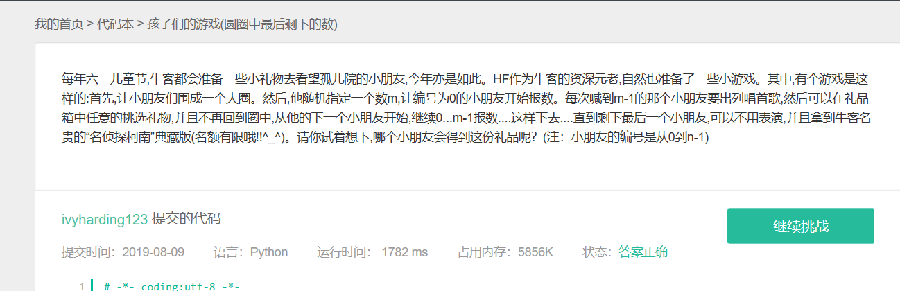 面试题62:孩子们的游戏(圆圈中最后剩下的数字)