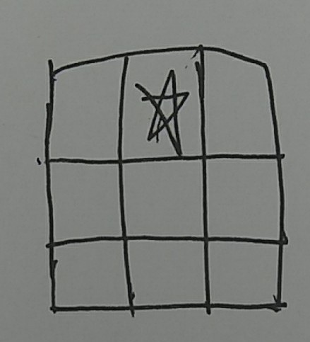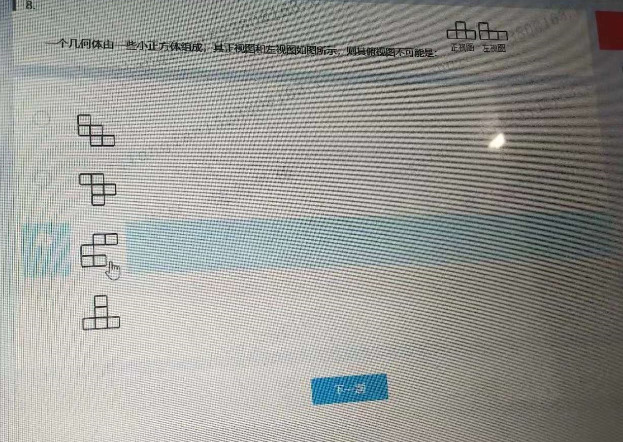 从正面看中间一列至少有一个位置存在2个方块,从左边看,最左边一列至少存在2个方块。综合一下,证明存在2个方块的位置在九宫格的第一行第二列