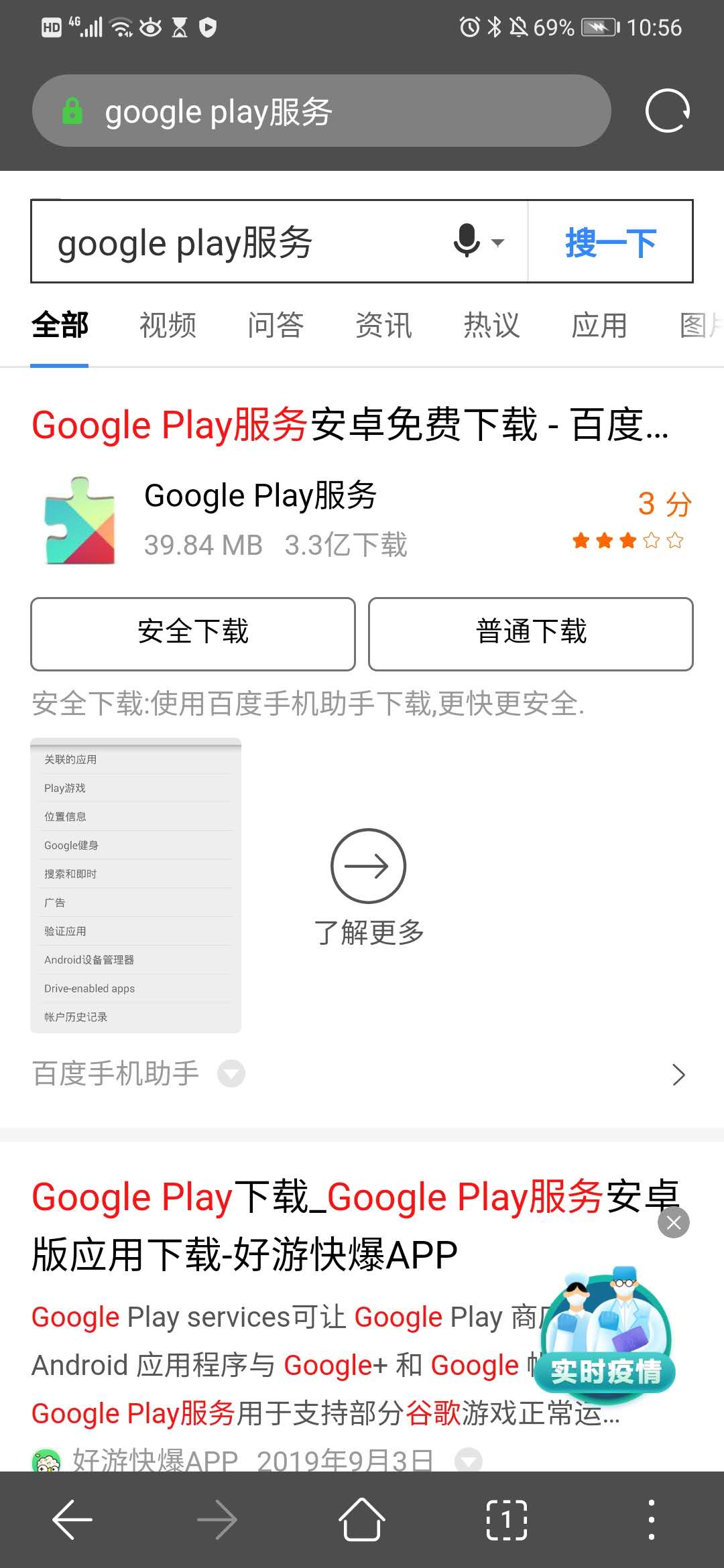解决:直接百度搜索google play服务,出现的第一个直接下载,然后一个一个安装google play四件套。成功安装好此软件后就没有任何问题了