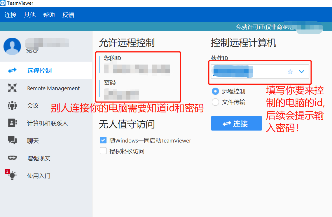 小白教程---如何使用teamviewer手机远程PC,PC远程PC