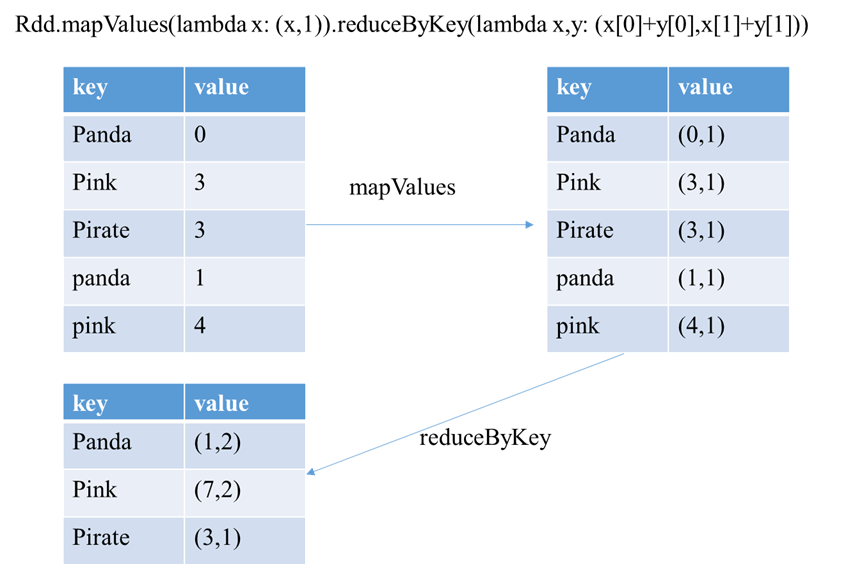 采用reduceByKey()和mapValues()计算每个键对应值的均值