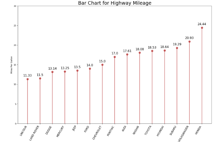 plt.title('Bar Chart for Highway Mileage', # 子图标题名称