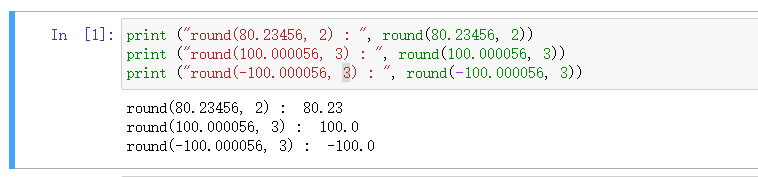 round(x,[,n])方法返回浮点数x的四舍五入值。