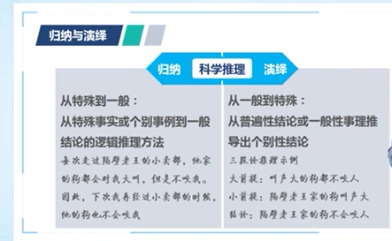 一个是演绎,也就是已经有了某个规律之类的,那根据这个规律,针对某个案例会有一个结论出现。