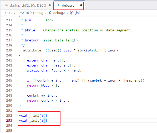 5、在启动文件调用main函数之前,添加初始化函数,如下图: