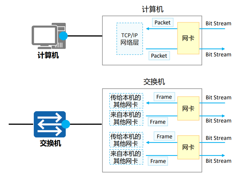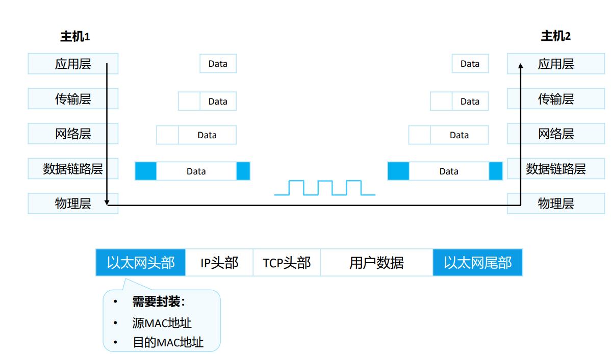以太网二层交换机转发数据的端口都是以太网口,并且只能够针对数据的二层头部 (以太网数据帧头) 中的MAC地址进行寻址并转发数据。