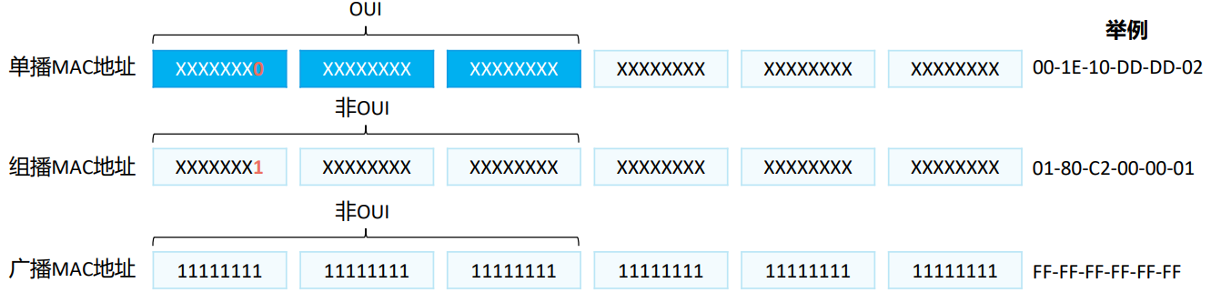 OUI (Organizationally Unique Identifier):厂商代码,由IEEE分配,3 Byte,24 bit。
