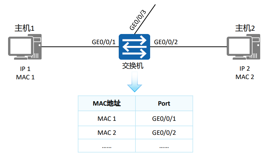 每台交换机中都有一个MAC地址表,存放了MAC地址与交换机端口编号之间的映射关系。