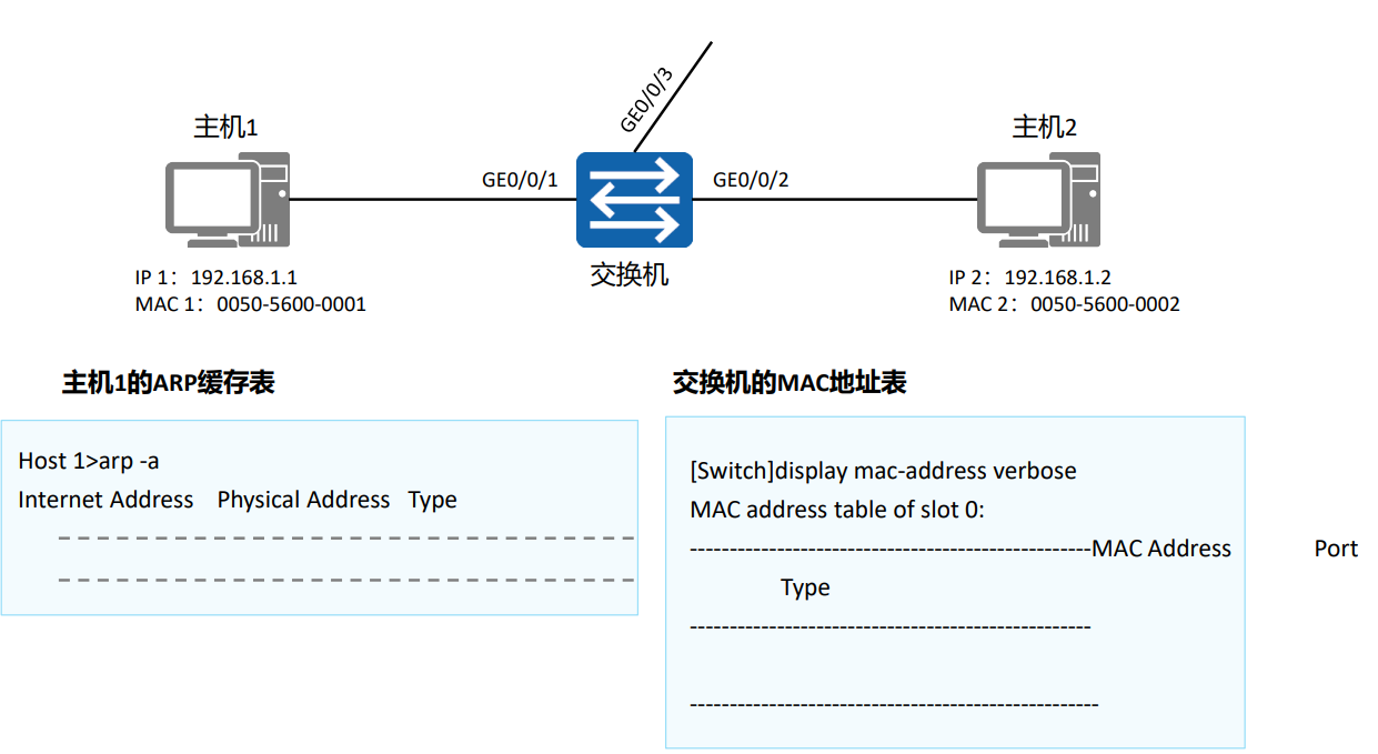 主机:初始化状态,仅知道本机IP地址和MAC地址(假设已获取对端IP地址)