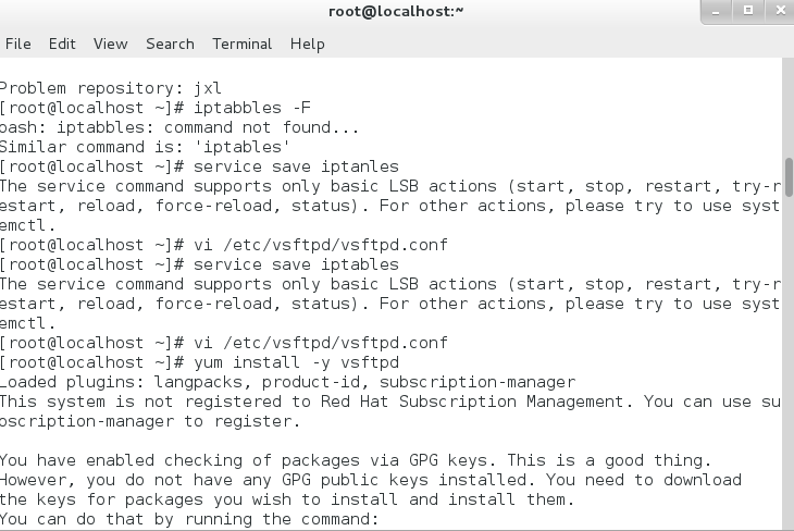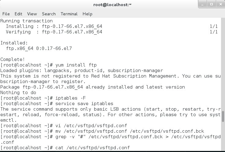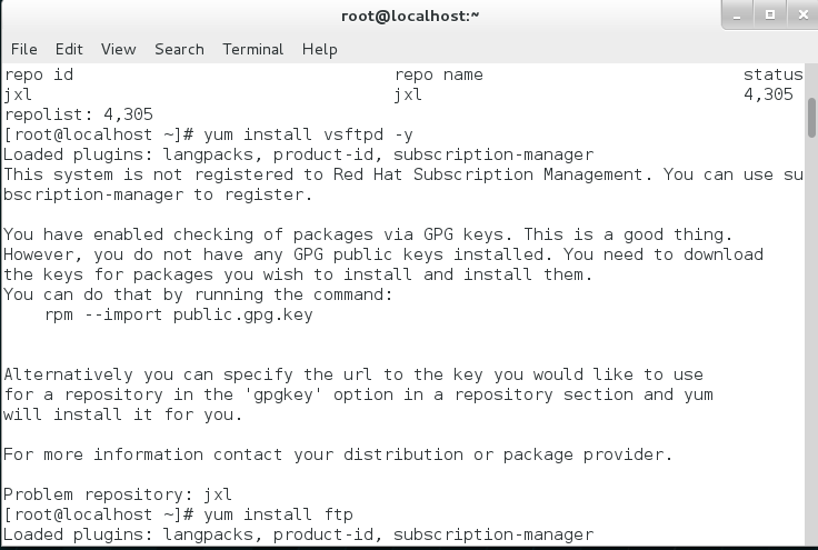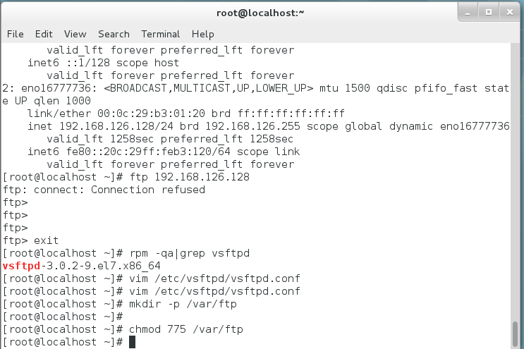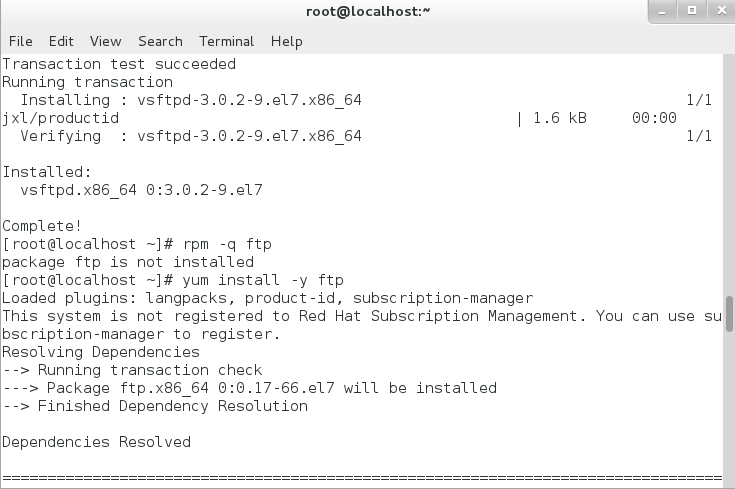 在终端命令窗口输入一下命令进行验证:rpm – qa vsftpd