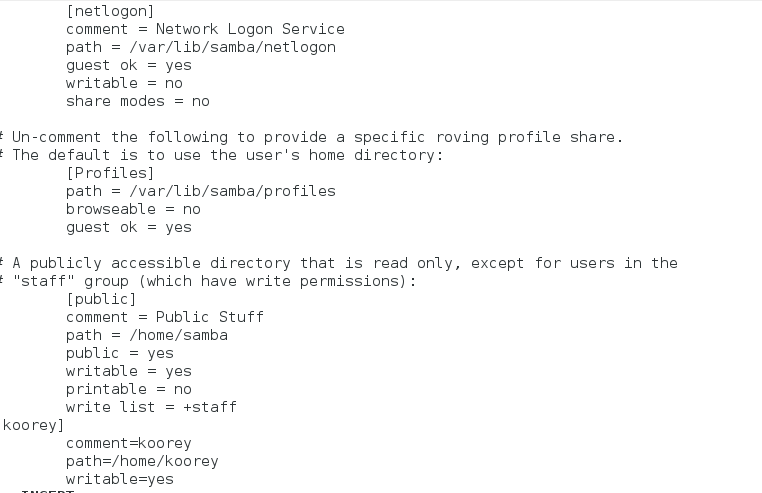 在/etc/samba/smb.conf文件的末尾之添加如下字段:
