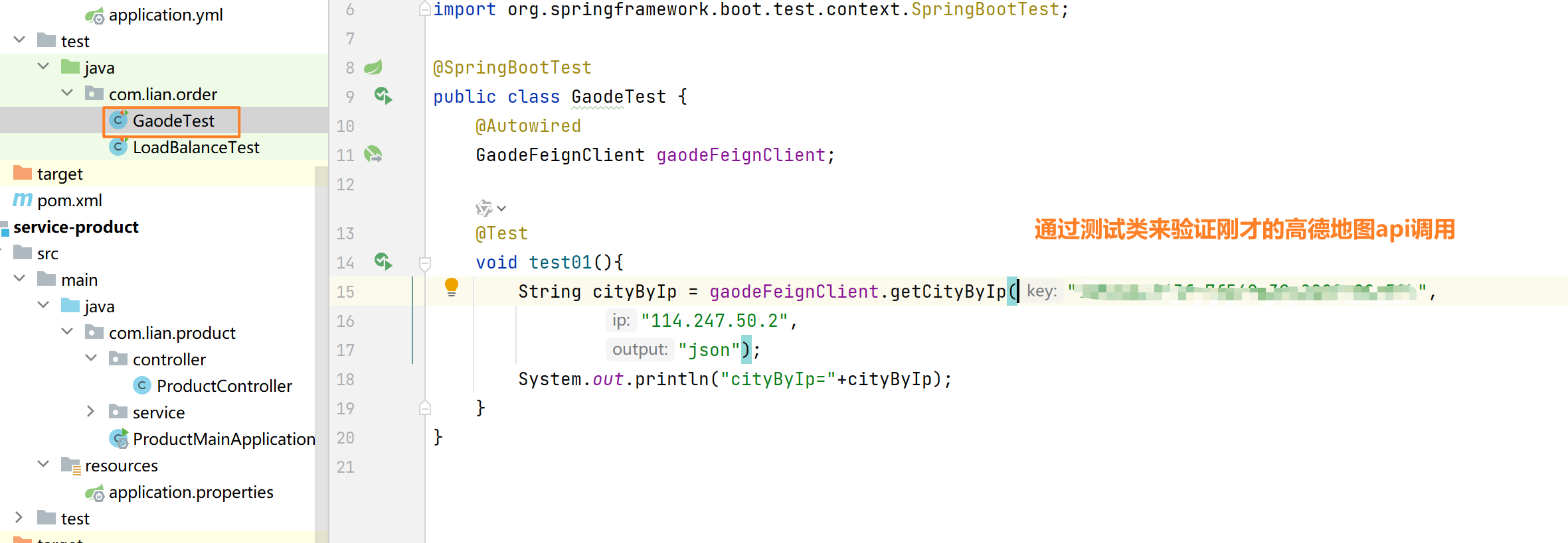 ②编写FeignClient接口类(跟调用本地服务的区别是:在@FeignClient加入了第三方api的url)