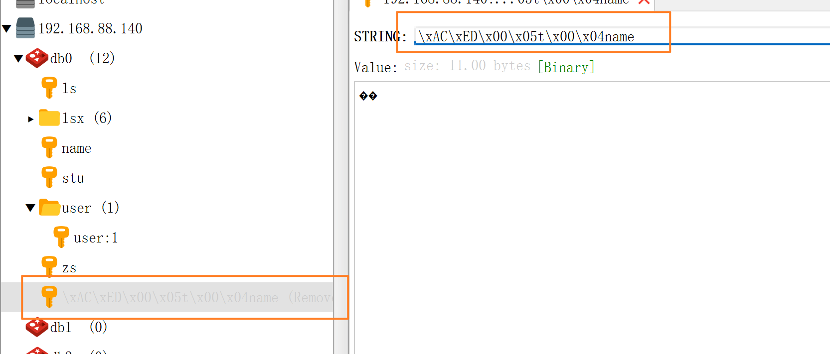 在使用下面的代码操作redis数据库,给name赋值时,无法实现更改redis数据库中name的值,而是会多一个\xAC\xED\x00\x05t\x00\x04name的key,并且它的值也是乱码