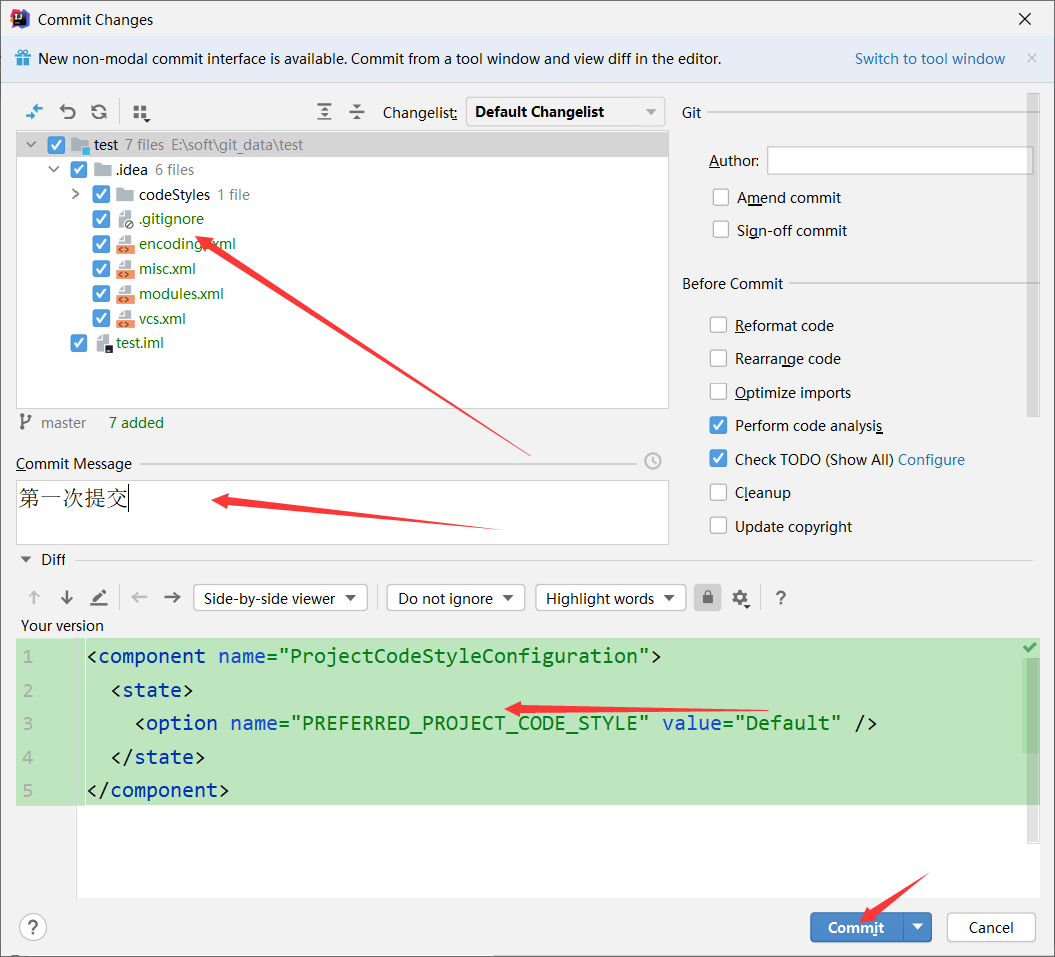 然后进行commit commit之后颜色消失