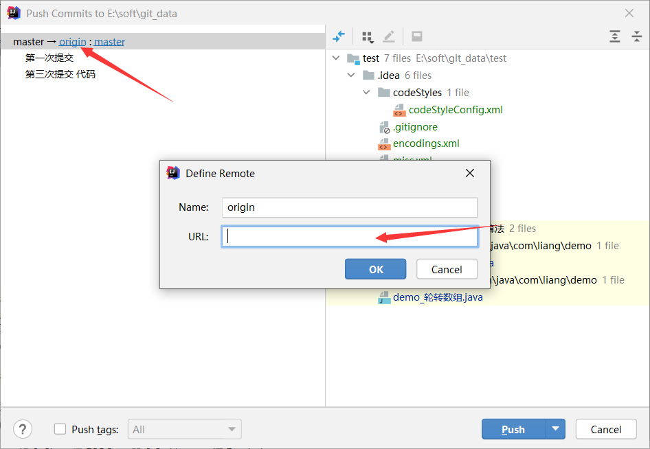 点击右上角的箭头 push