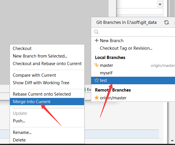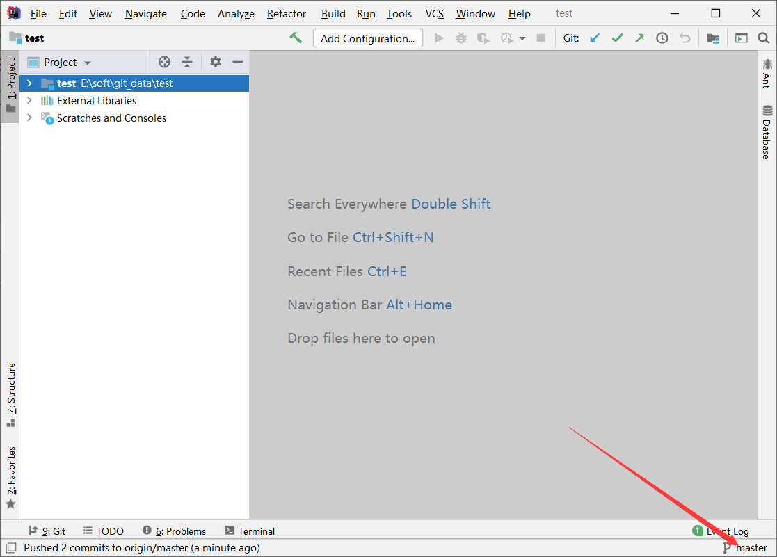 切换到master会发现 自己编写的代码不存在 此时进行合并分支即可
