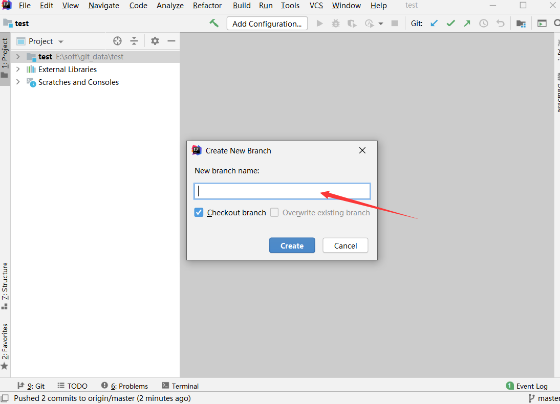 输入分支名称即可 下方的勾选择了则会自动切换到新分支