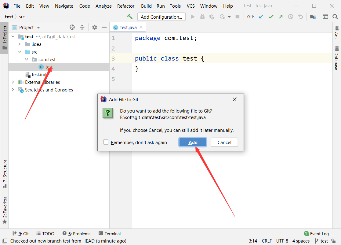 创建一个新的类时 会让add到本地仓库 选择add即可