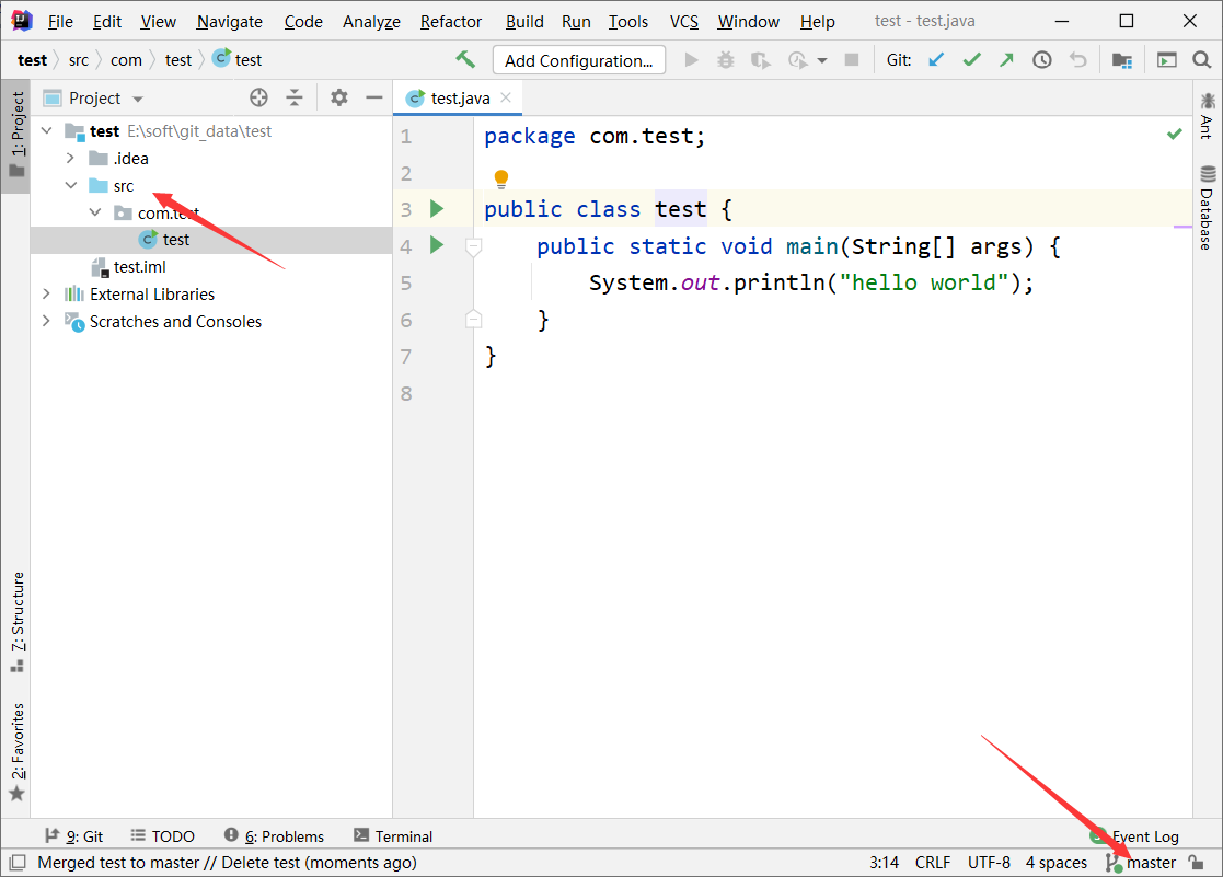 完成之后可以发现master中 出现了刚才编写的代码