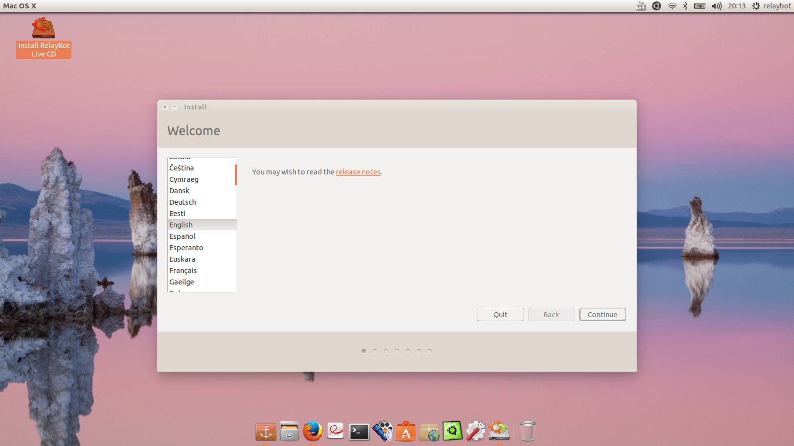 点击左上角Install RelayBot Live CD,按照ubuntu的安装步骤即可安装到本机。