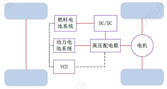 增程型车以动力电池输出的功率对整车进行功率跟随,全功率型车以燃料电池系统输出的功率对整车进行功率跟随。