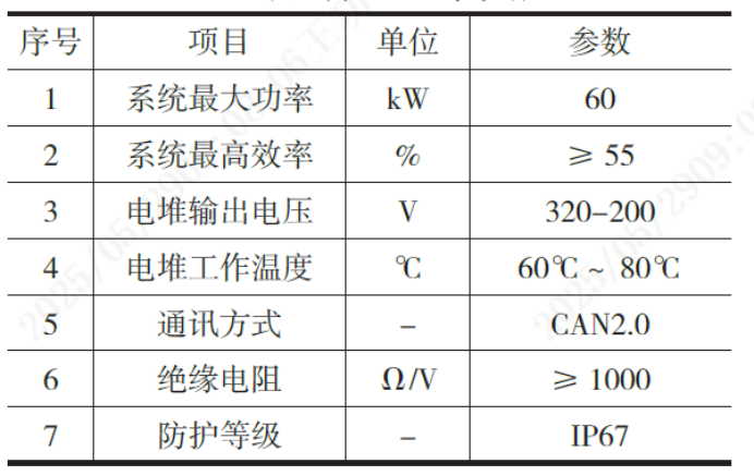 以某燃料电池系统(系统参数如下表)搭建AMESim一维仿真模型。