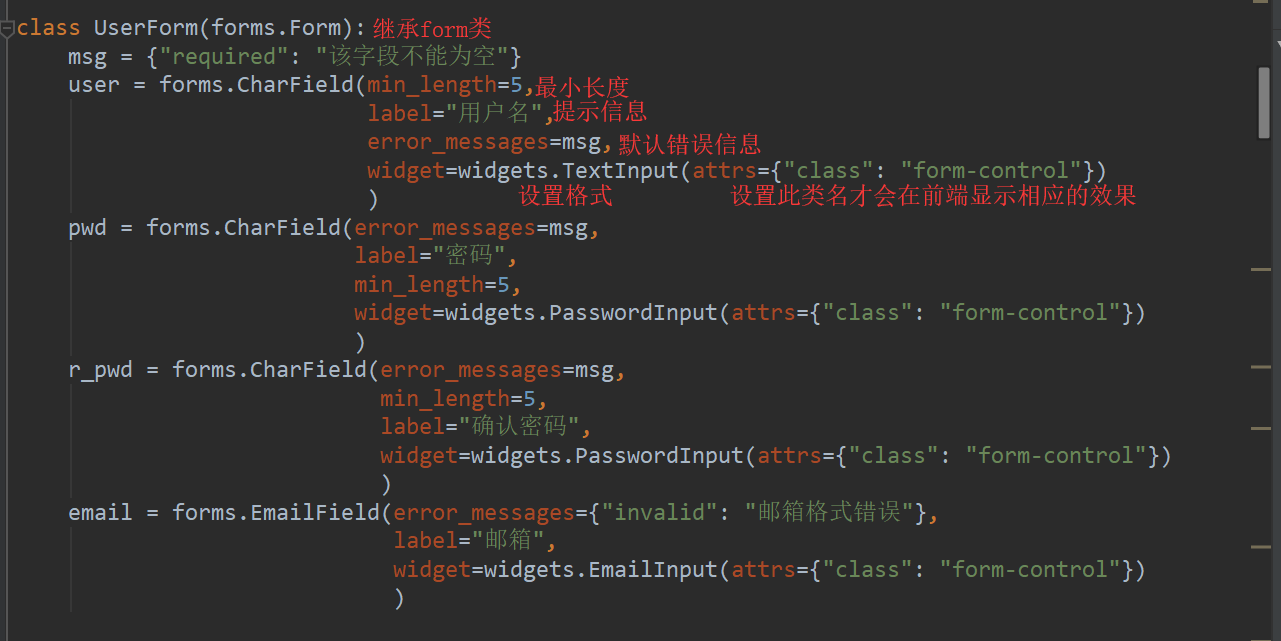 我们先在Django项目app下创建一个form.py的文件,用来写跟form组件有关的代码
