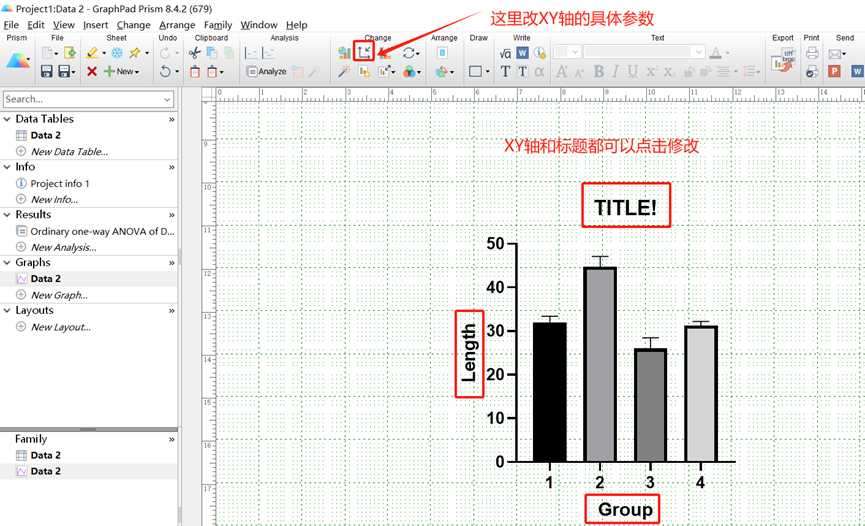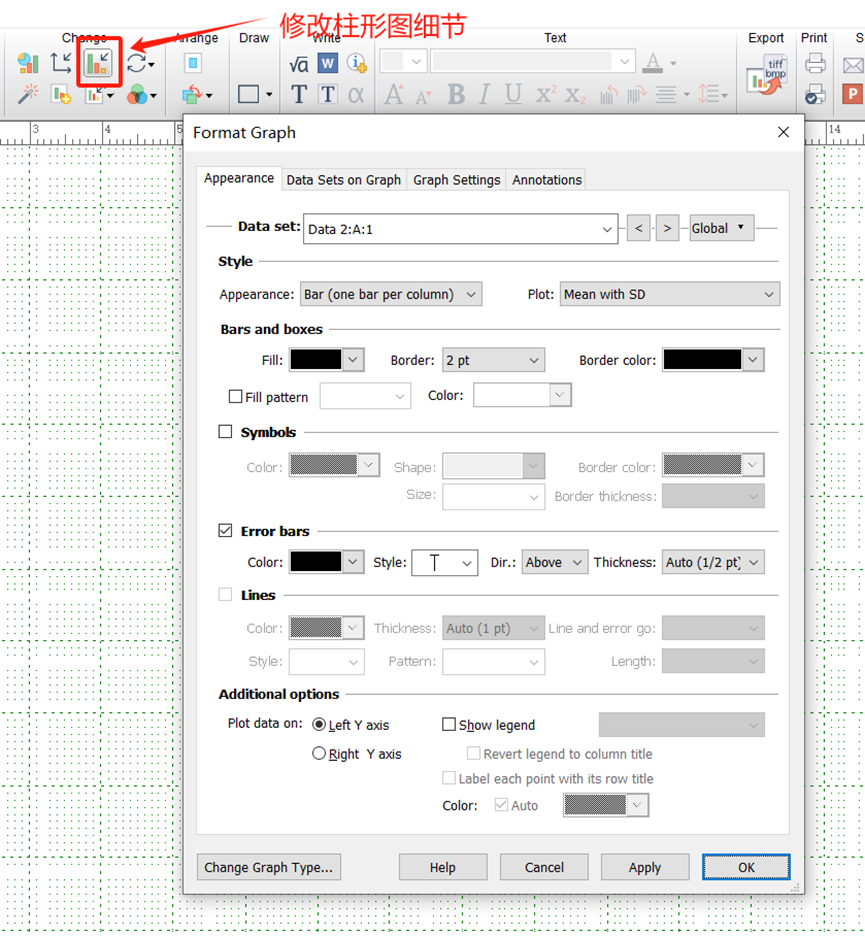 这个Format graph是修改图的细节,如填充颜色,边框颜色,误差棒的形状,是否添加样本黑点标注。